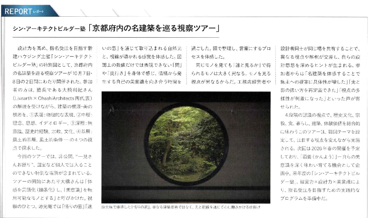 【掲載】新建ハウジングにシン・アーキテクトビルダー塾「京都府内の名建築を巡る視察ツアー」