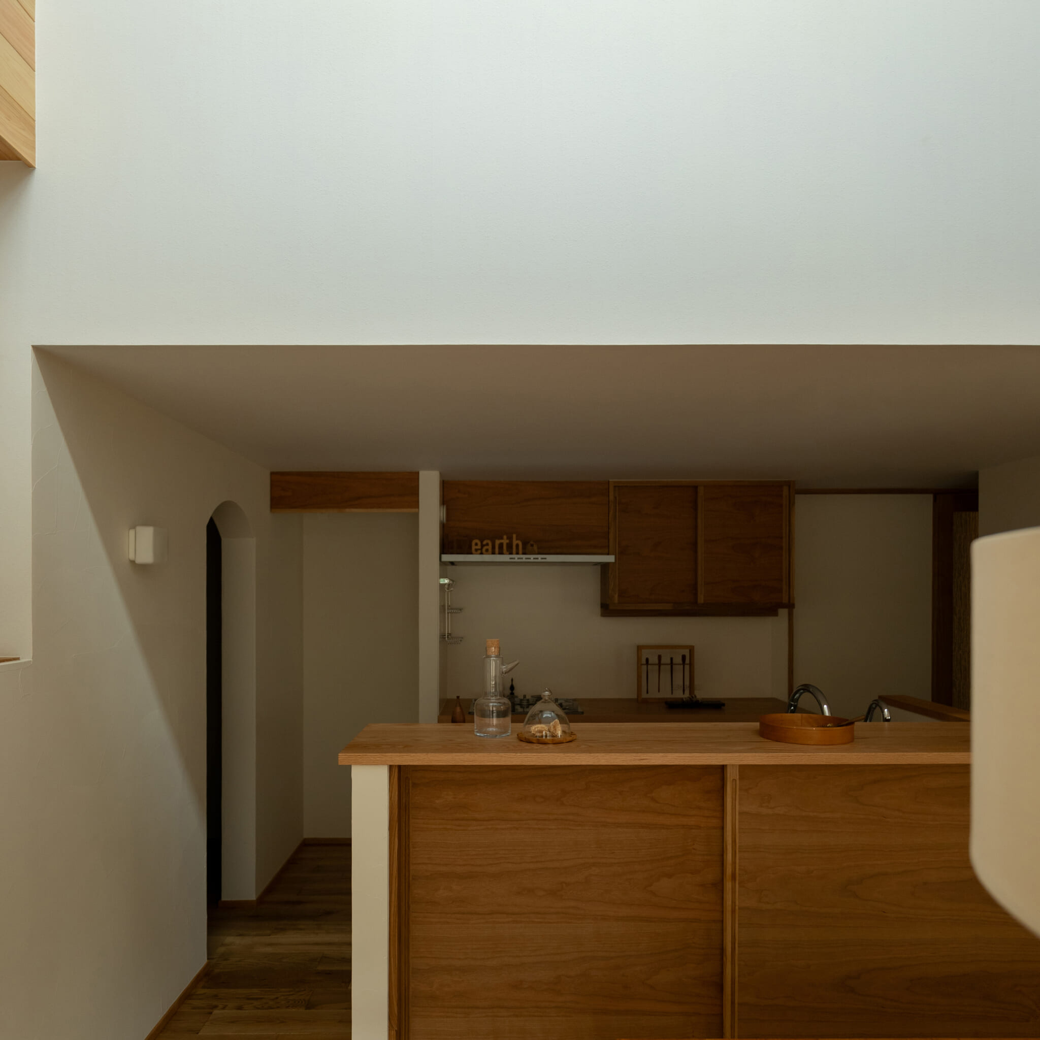 中央に据えた大きな吹抜と大きく確保した広い南の庭を見ながら、誕生したばかりのお子様と共に春ののんびりと明るい昼間に長閑で心地よく過ごすシーンをインスピレーションにしながら設計いたしました。