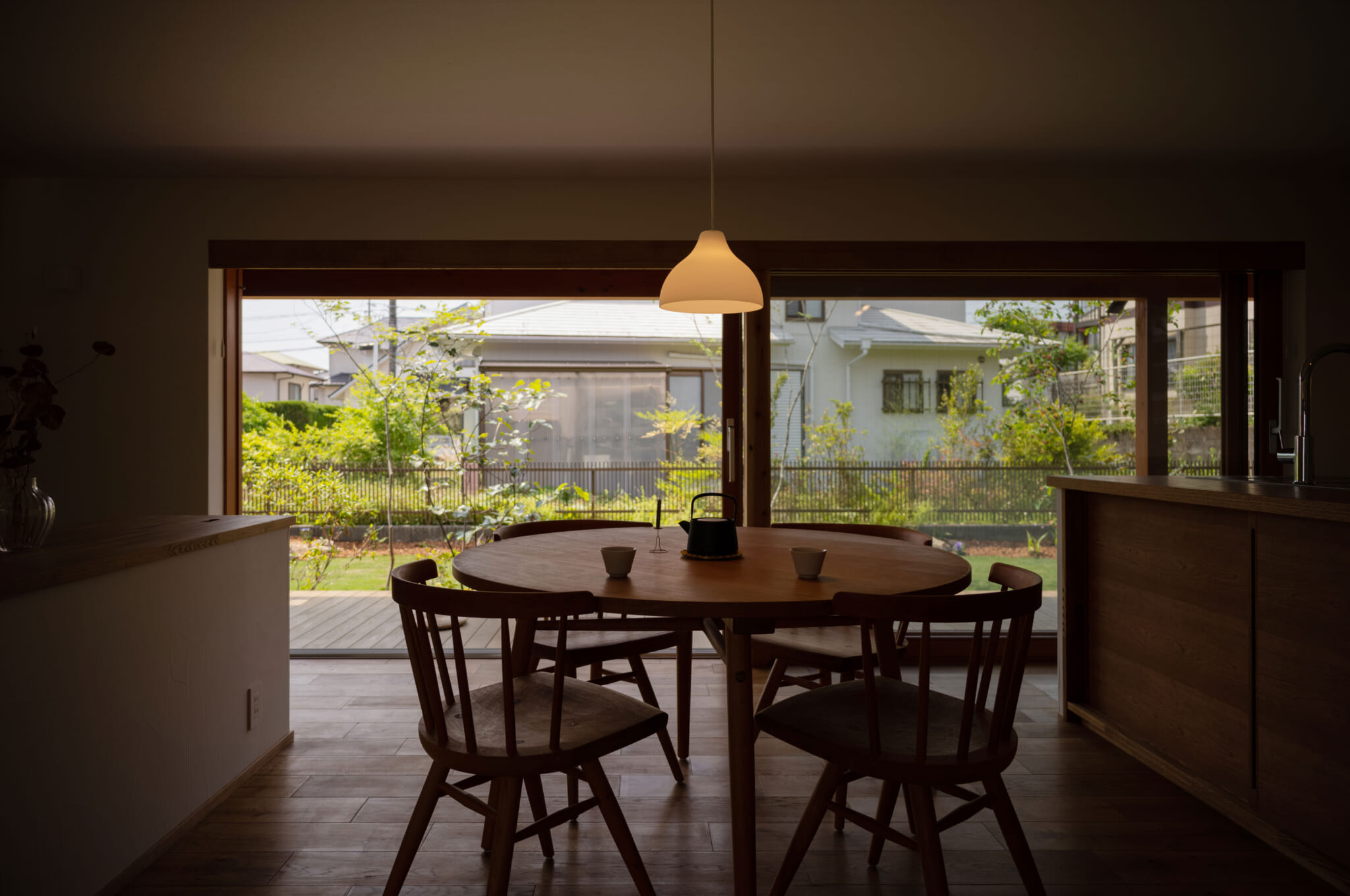 畳リビングやダイニングからは北の庭と南の庭の両方を眺めることが出来、