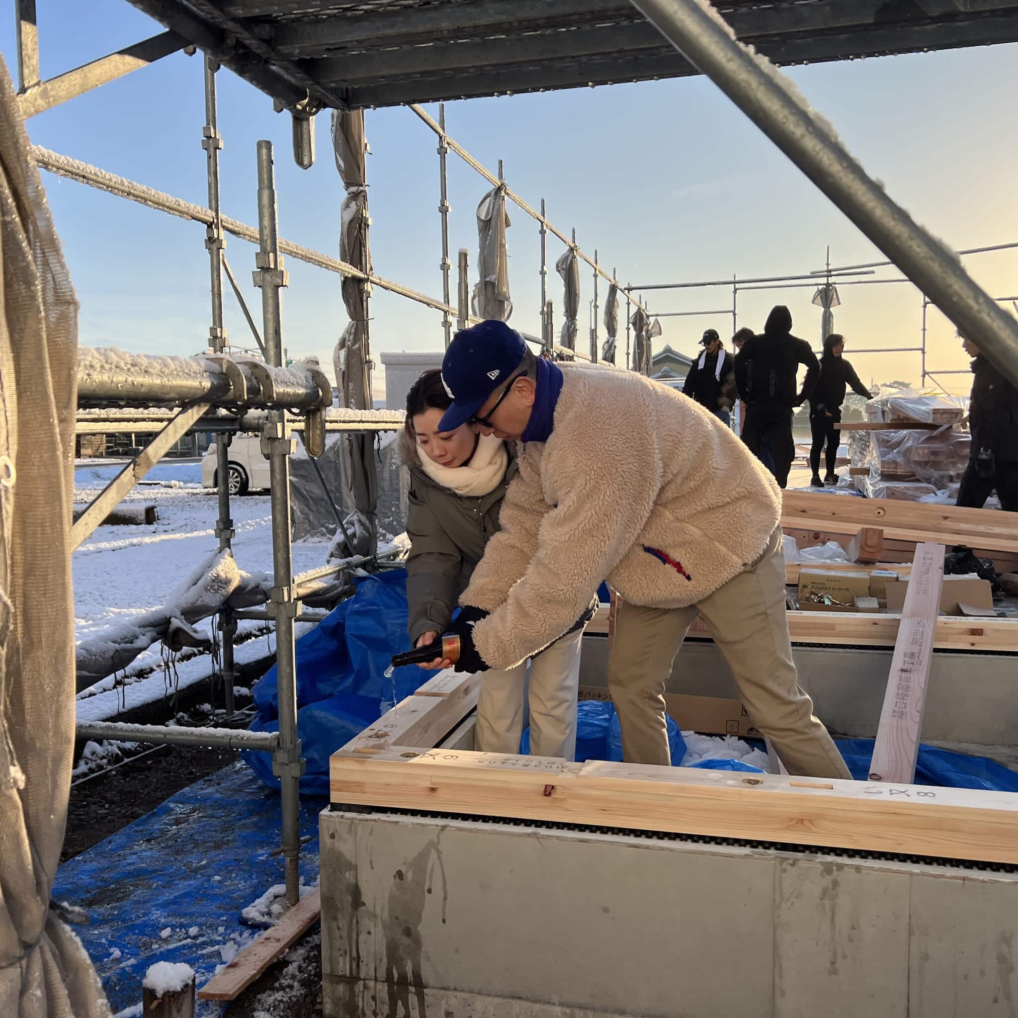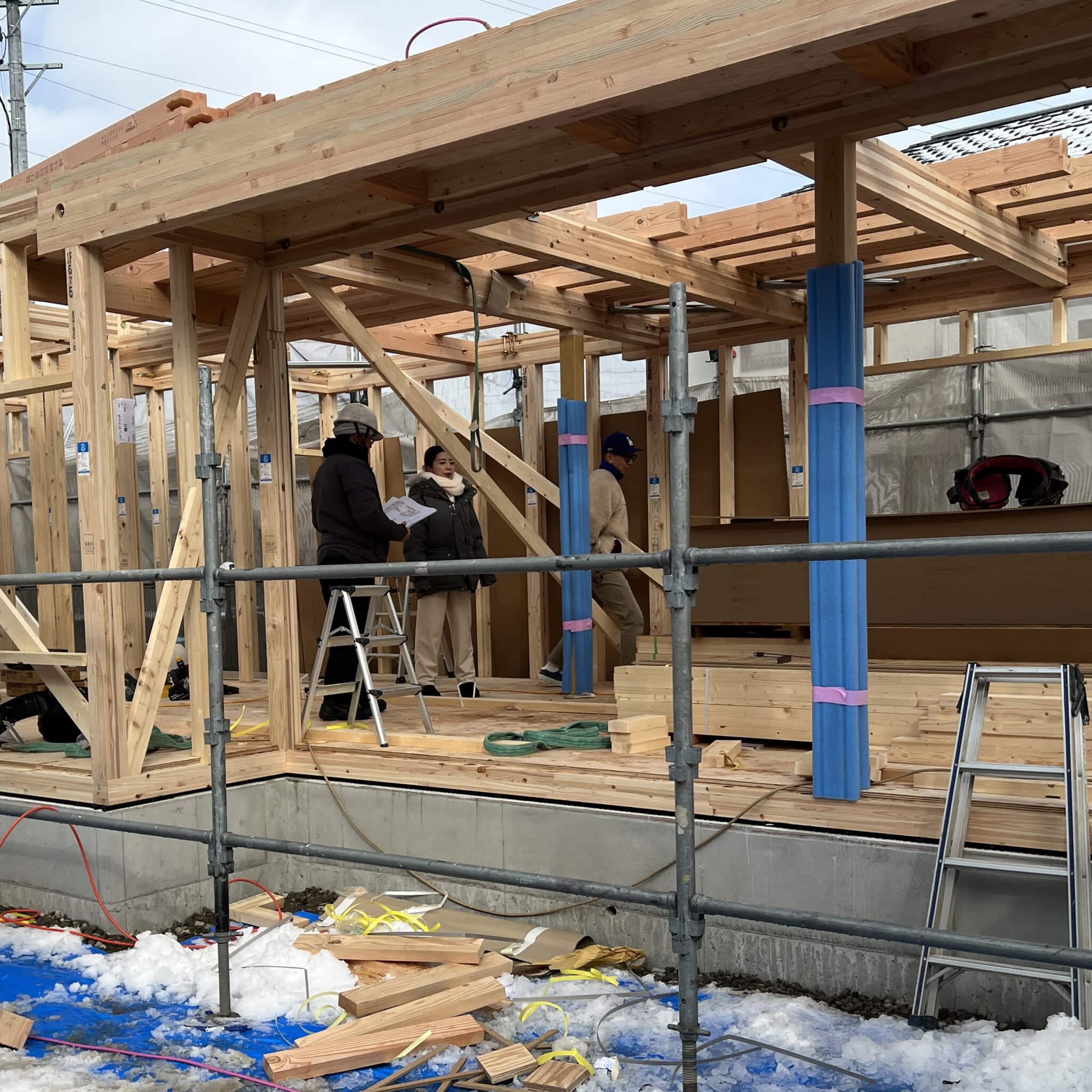 大工さんの休憩中には建物の中を見学される場面もあり、