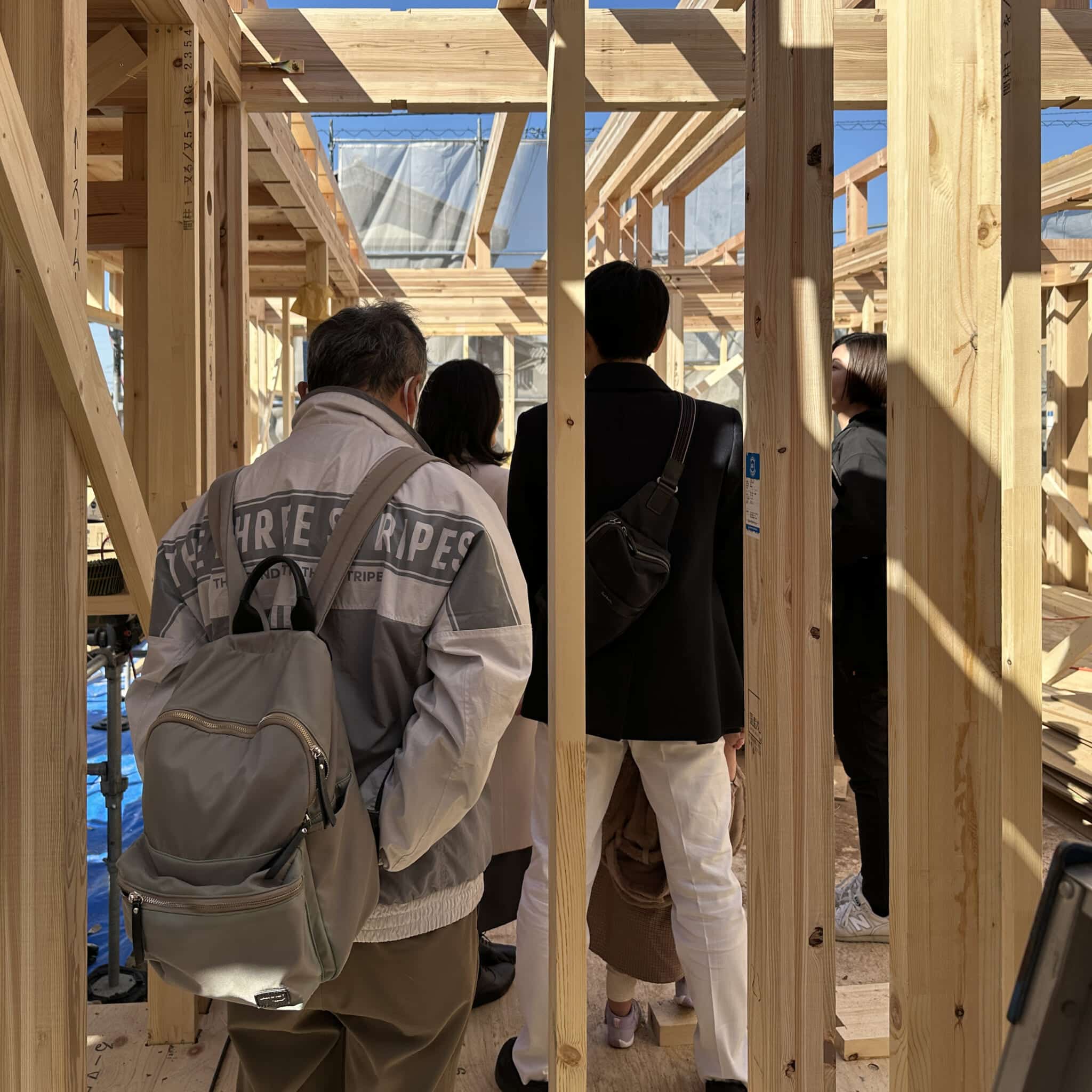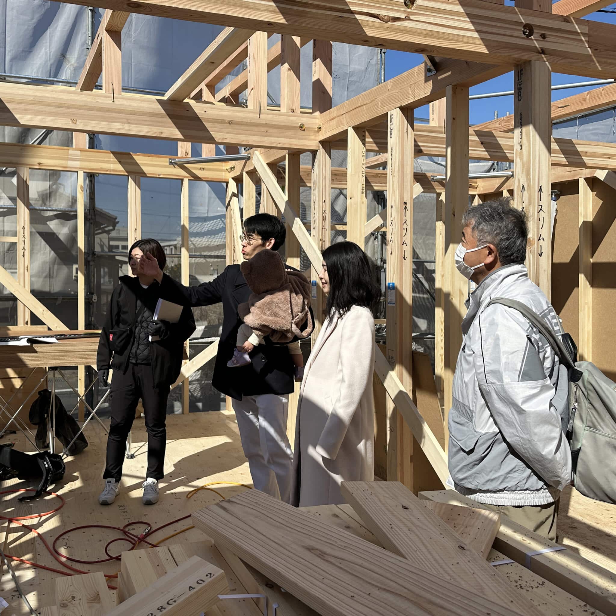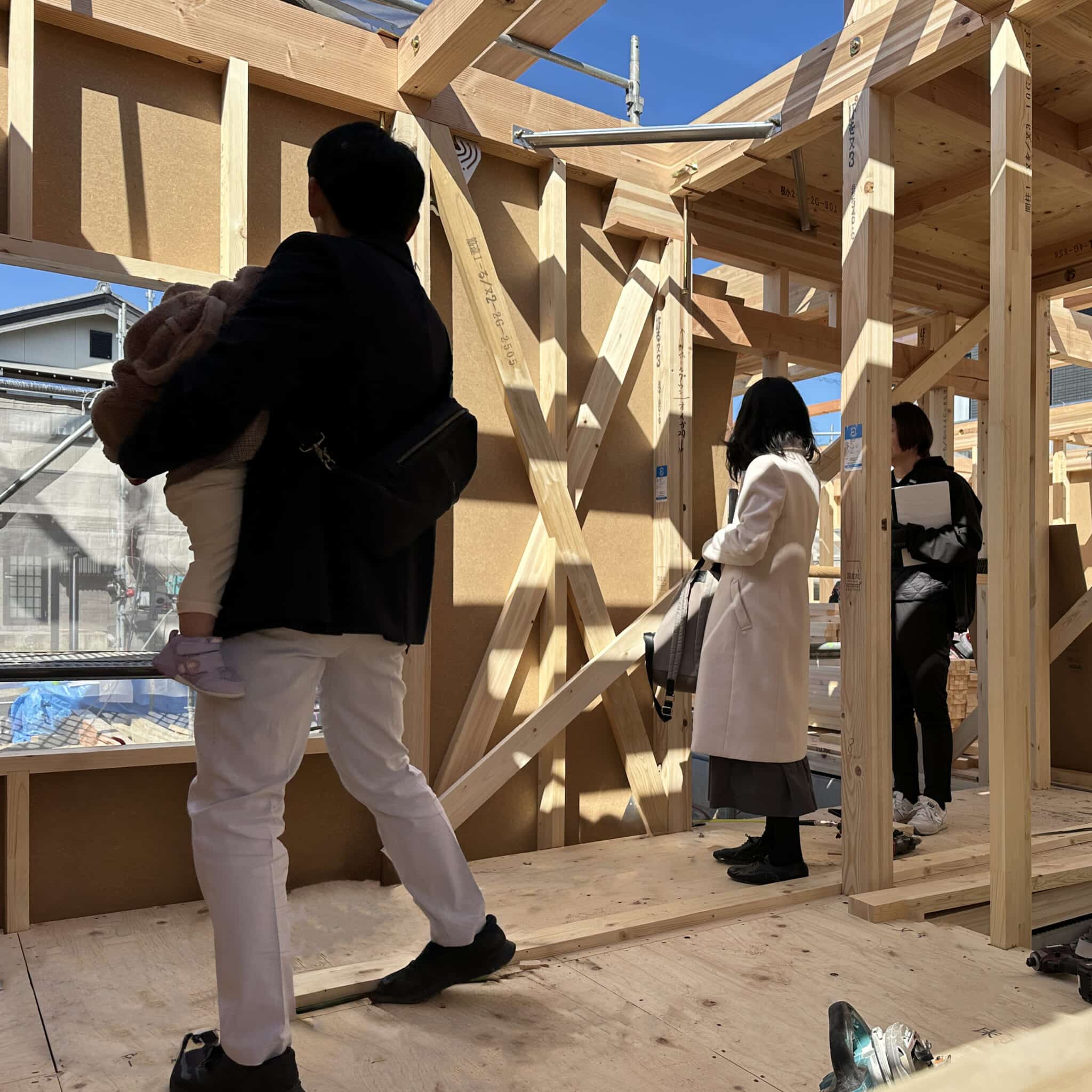 大工さんの休憩中には建物の中を見学される場面もあり、