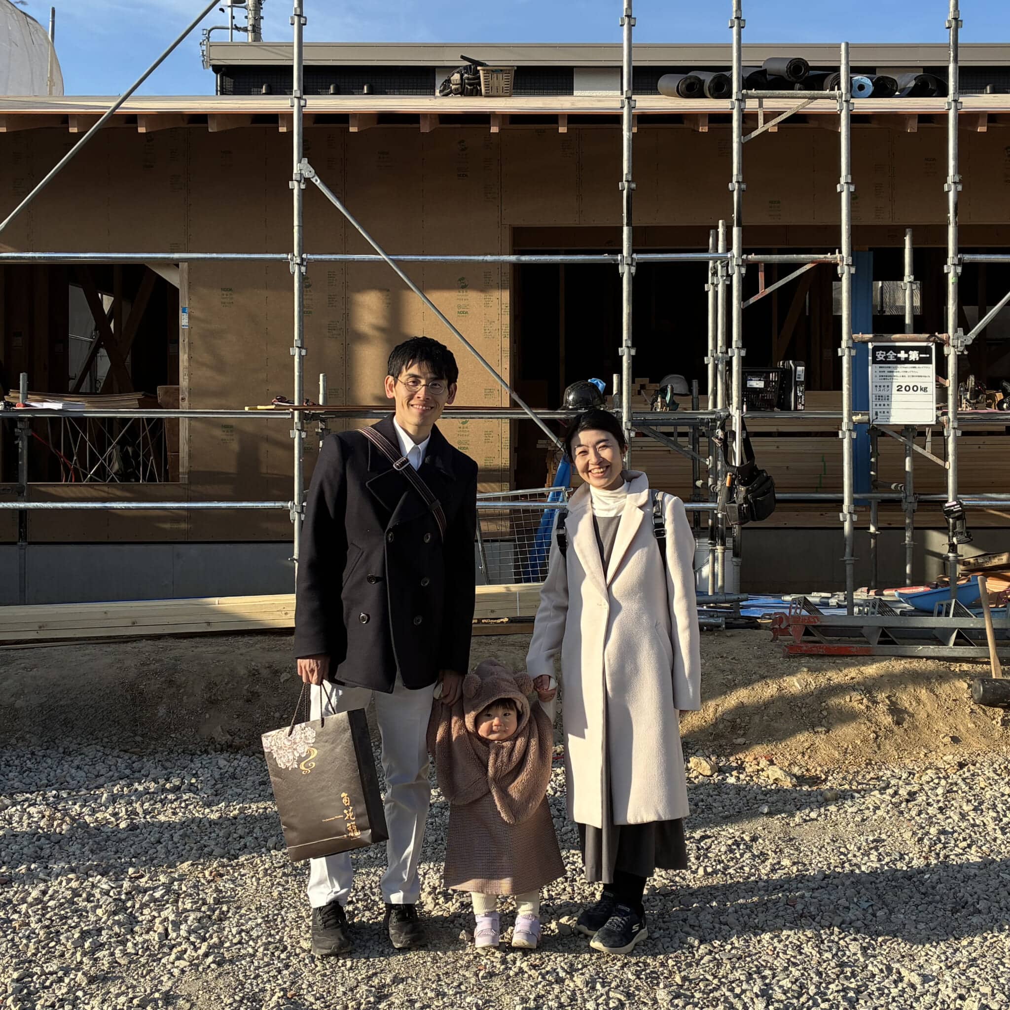 当日は、天気に恵まれ晴天の中、無事に上棟を終えることができました。