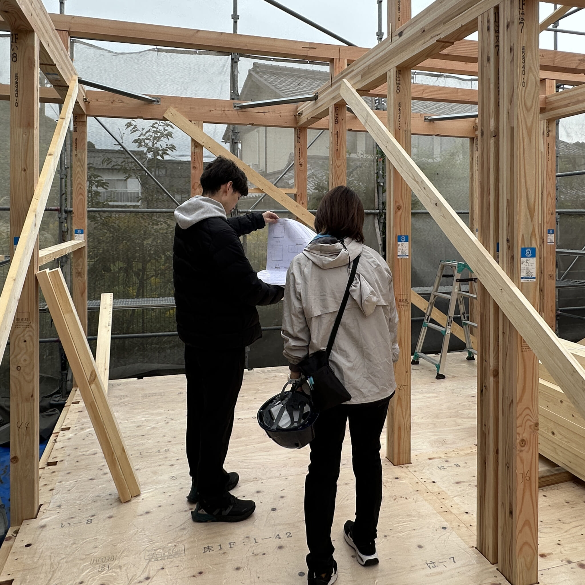 休憩時間には実際に家の中を見ていただき、図面と実際を照らし合わせながら見学されており、