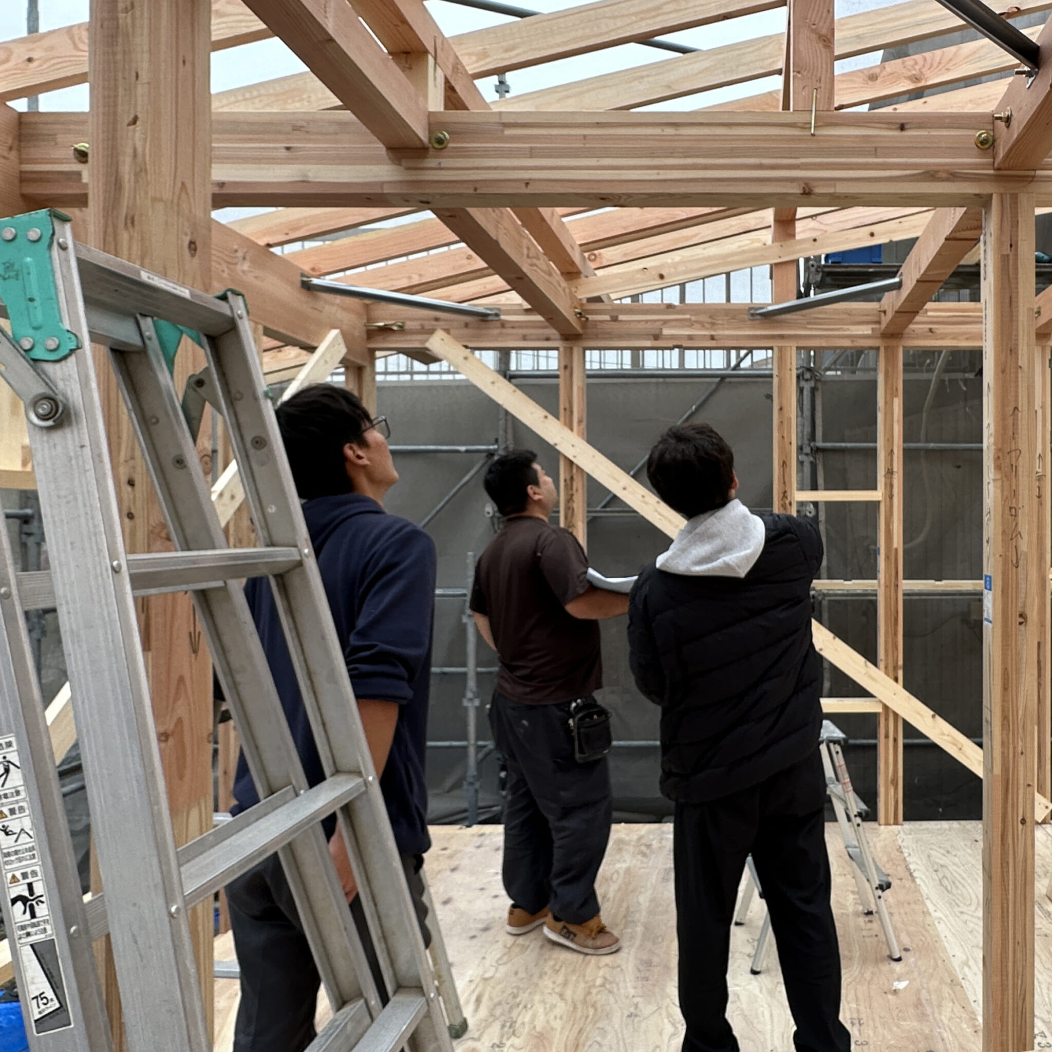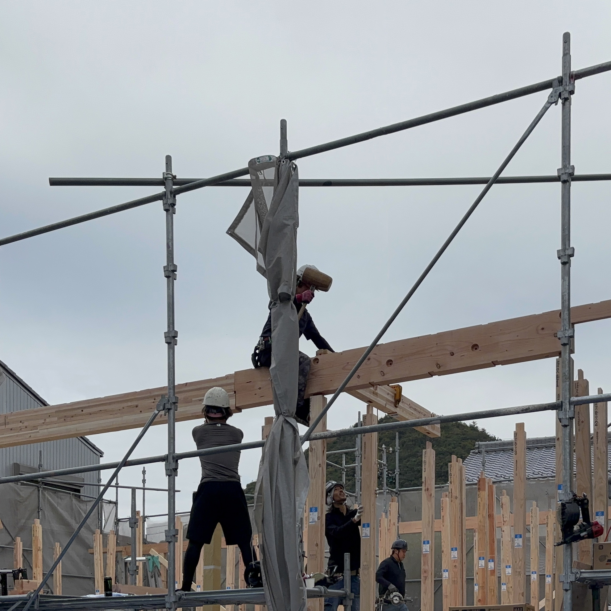 曇り空の中の建て方でしたが、雨もなんとかもちこたえてくれて、