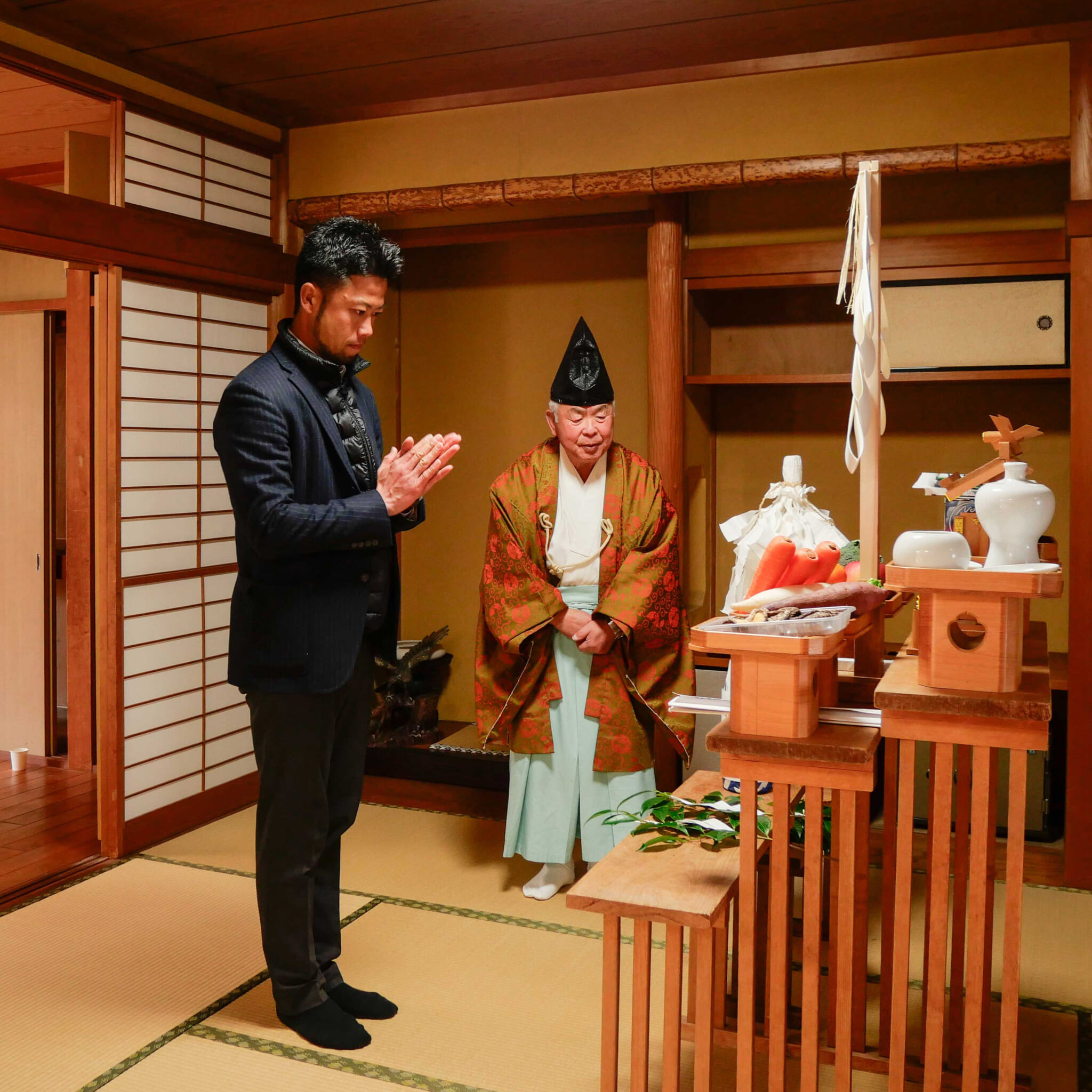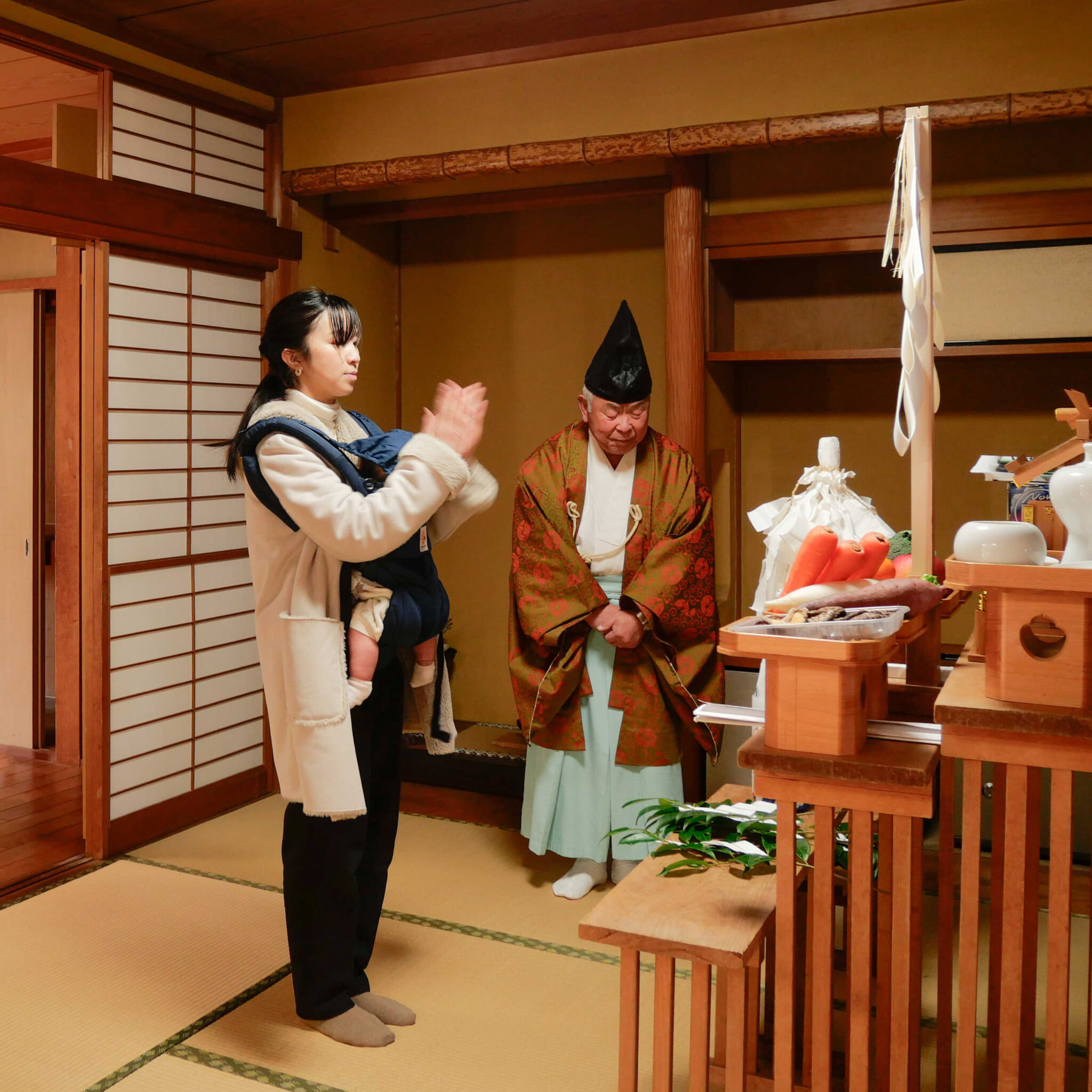 お施主様のご両親たちもご参加くださり、三世帯で和やかな雰囲気の中、式が執り行われました。