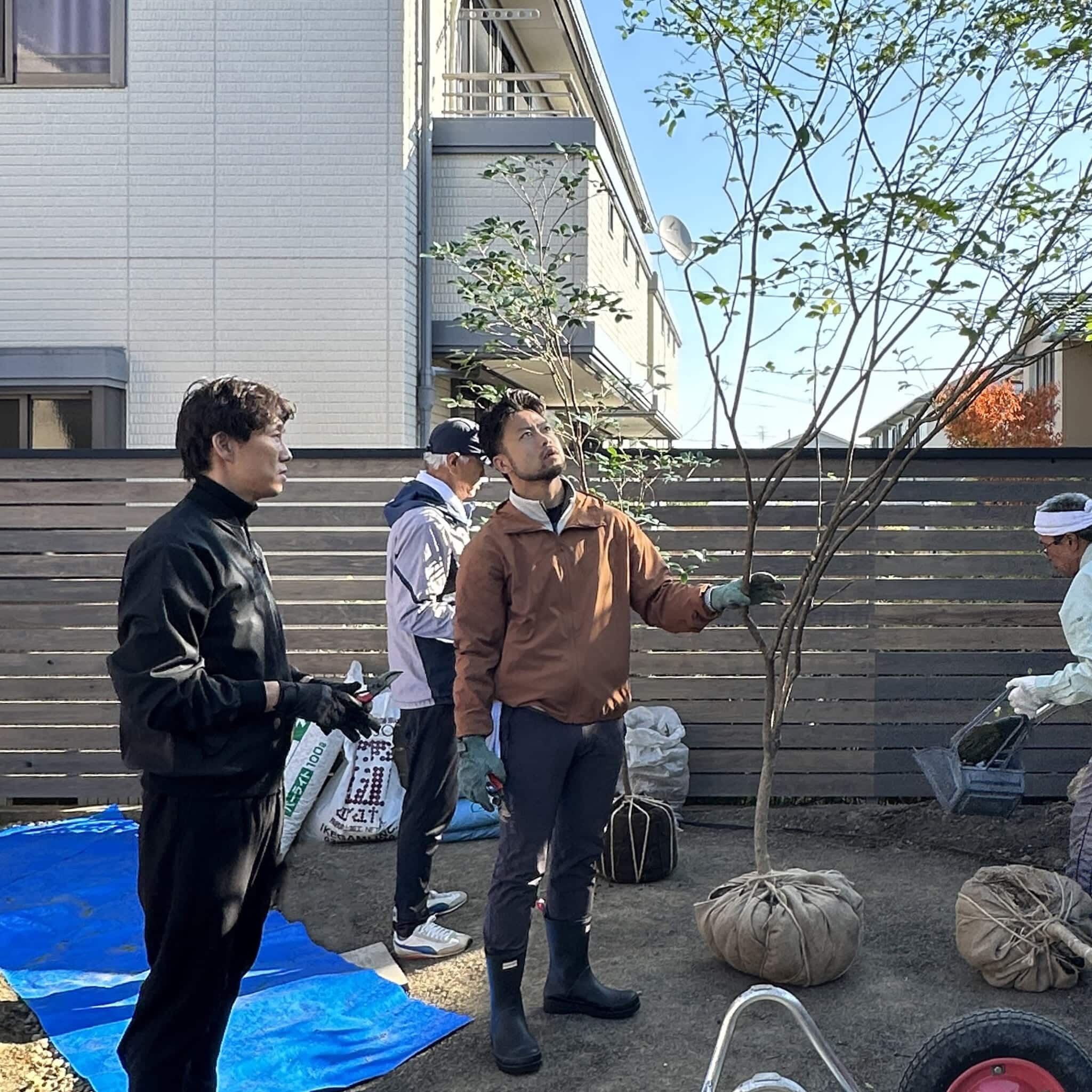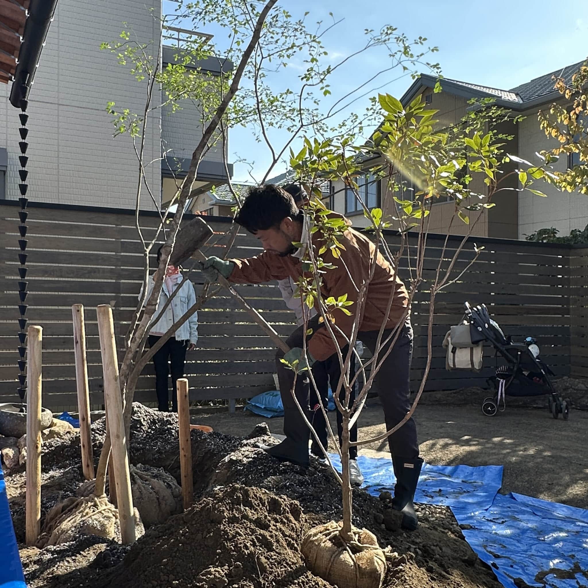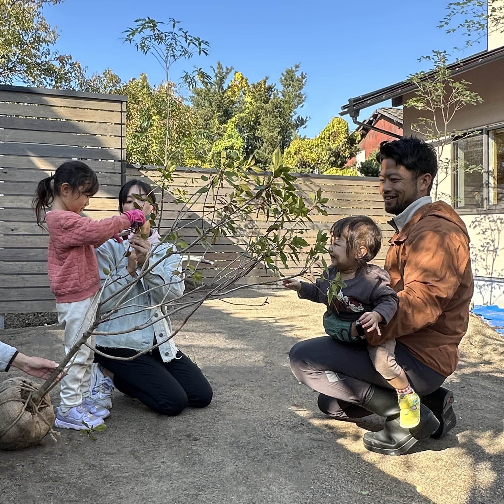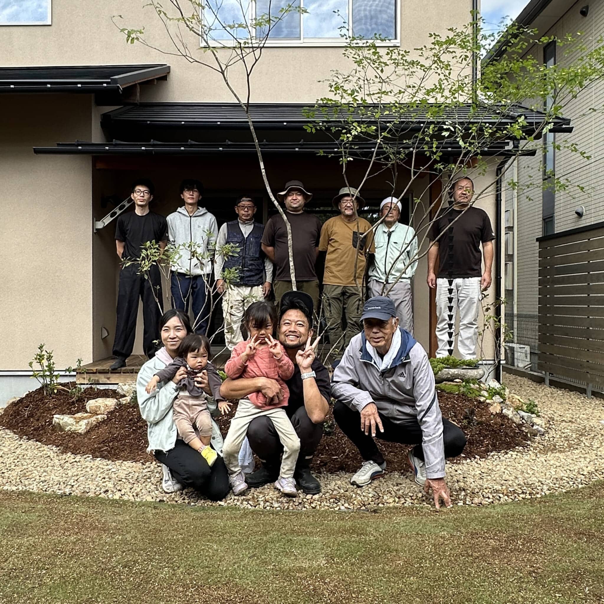 ご家族とお父様もご参加されて、三世代皆様、生き生きと楽しんでお庭造りを