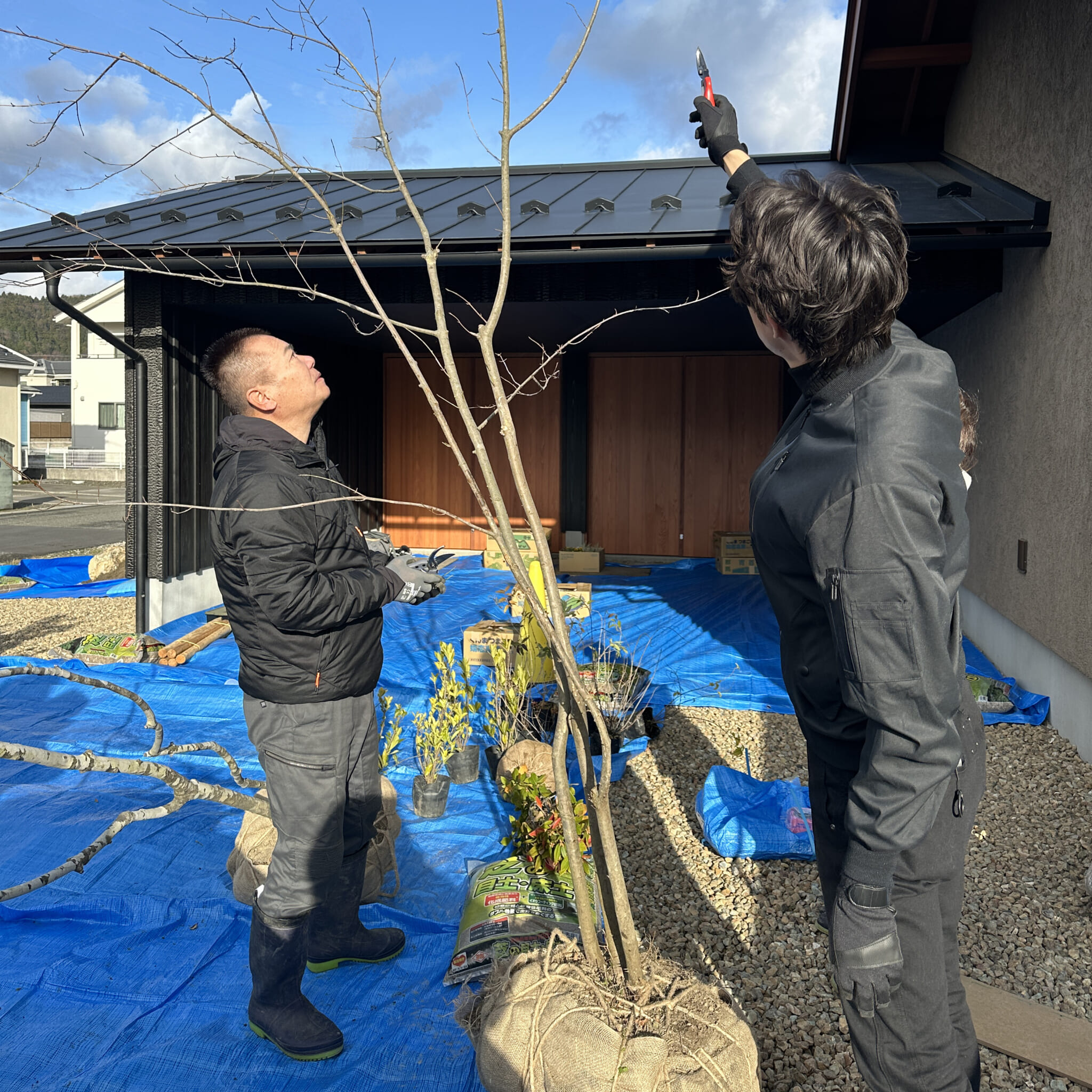 これまで図面や打合せで思い描いてきた暮らしが、 植栽を通して「目に見える風景」となっていく時間。