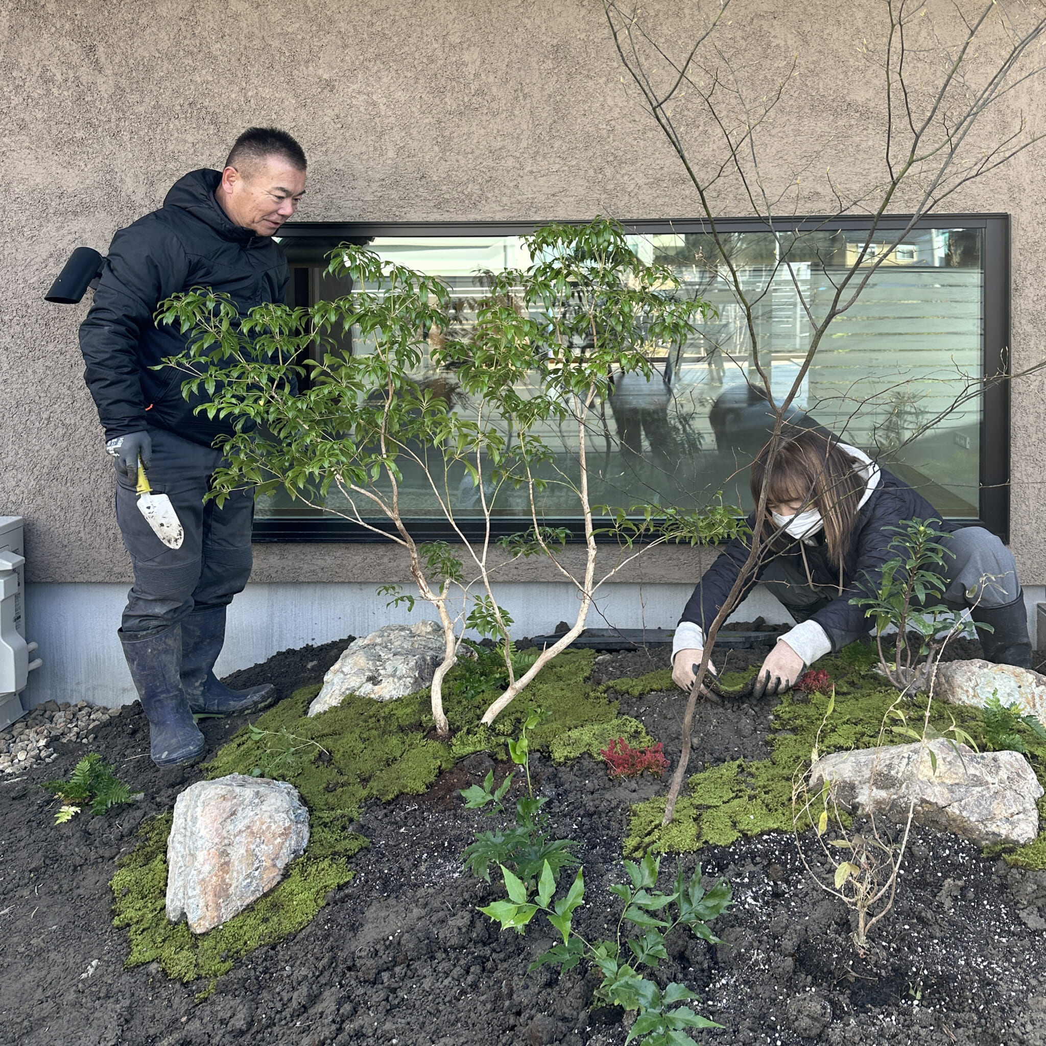 完成していくお庭を眺めながら、 お二人の表情が少しずつほころんでいくのが印象的でした。