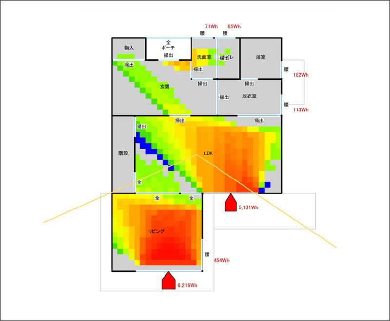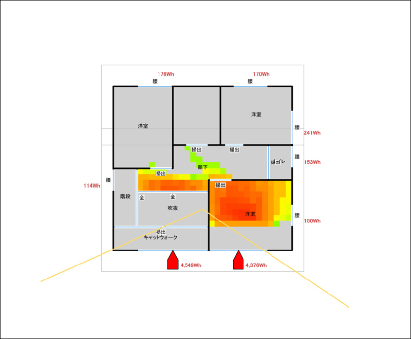 太陽の熱エネルギーを温熱環境に活かすことは、パッシブデザインの基本中の基本となります。冬場どのくらい日射により熱エネルギーを取得できるかも、きちんとシミュレーションします。