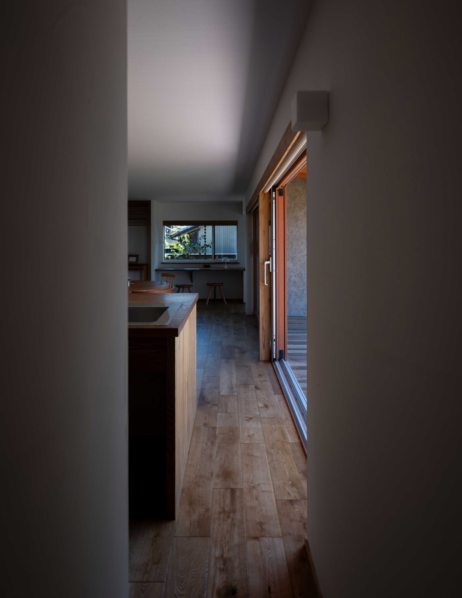 敷地の北側に望む山々の峯(みね)の重なる風景と異なる高さの3つの屋根の重なる形状は通底するものがある。